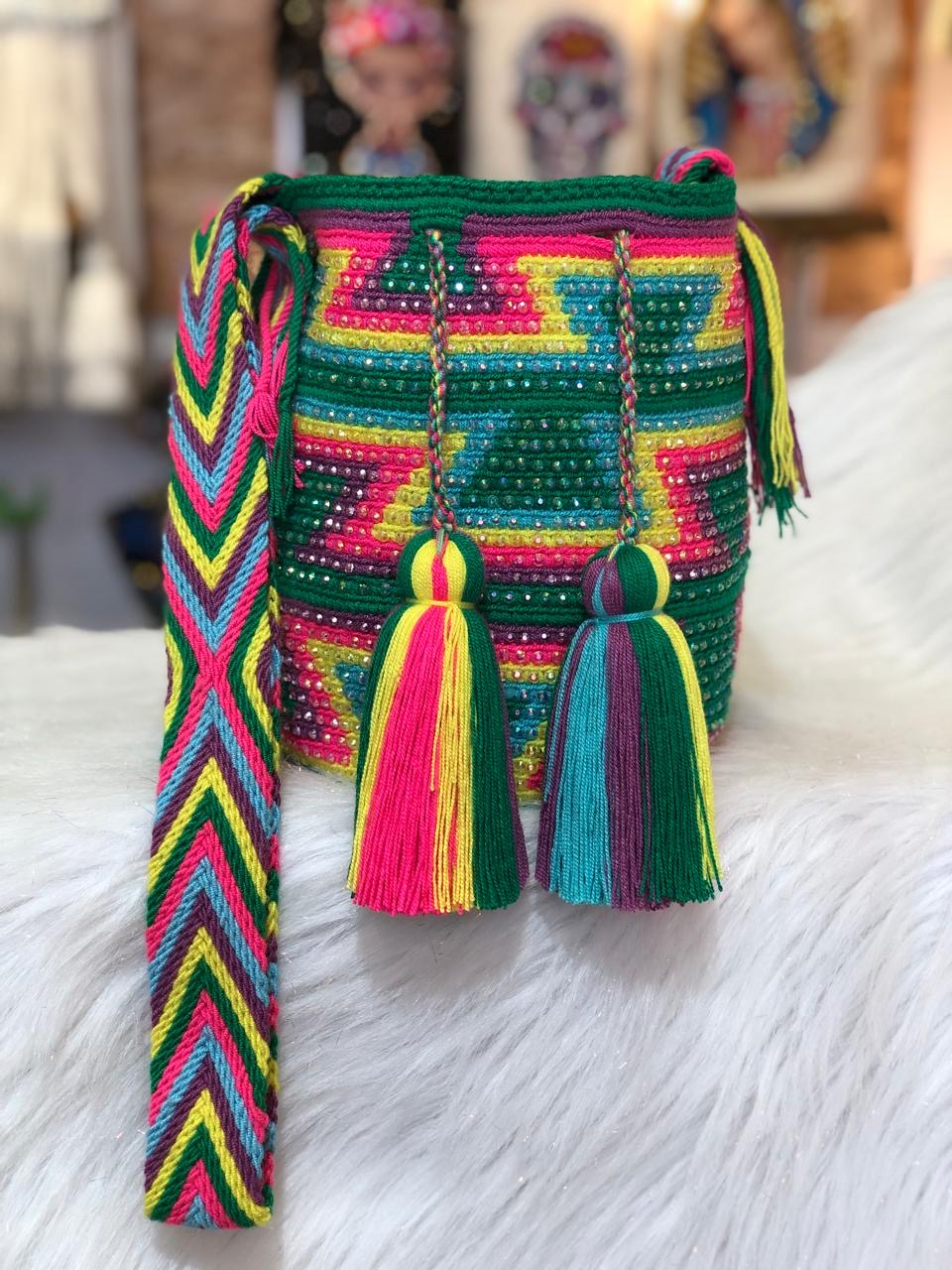 This medium-sized backpack is a traditional design, 100% handwoven by the Wayuu ethnic group on the La Guajira Peninsula . Made from high-quality wild cotton, its classic design is enhanced by beaded details, giving it a unique and elegant touch, characteristic of Wayuu craftsmanship . The meticulously placed beading highlights the backpack's authentic style, making it a special and distinctive piece. Measuring approximately 22 cm high x 21 cm wide and 99 cm long, it's perfect for those looking for a durable, spacious, and authentic backpack. Available in a variety of patterns and colors, each backpack has its own unique character, allowing you to choose the one that best suits your style. All products in this catalog are available for immediate shipping , so you can enjoy this unique piece without delay.