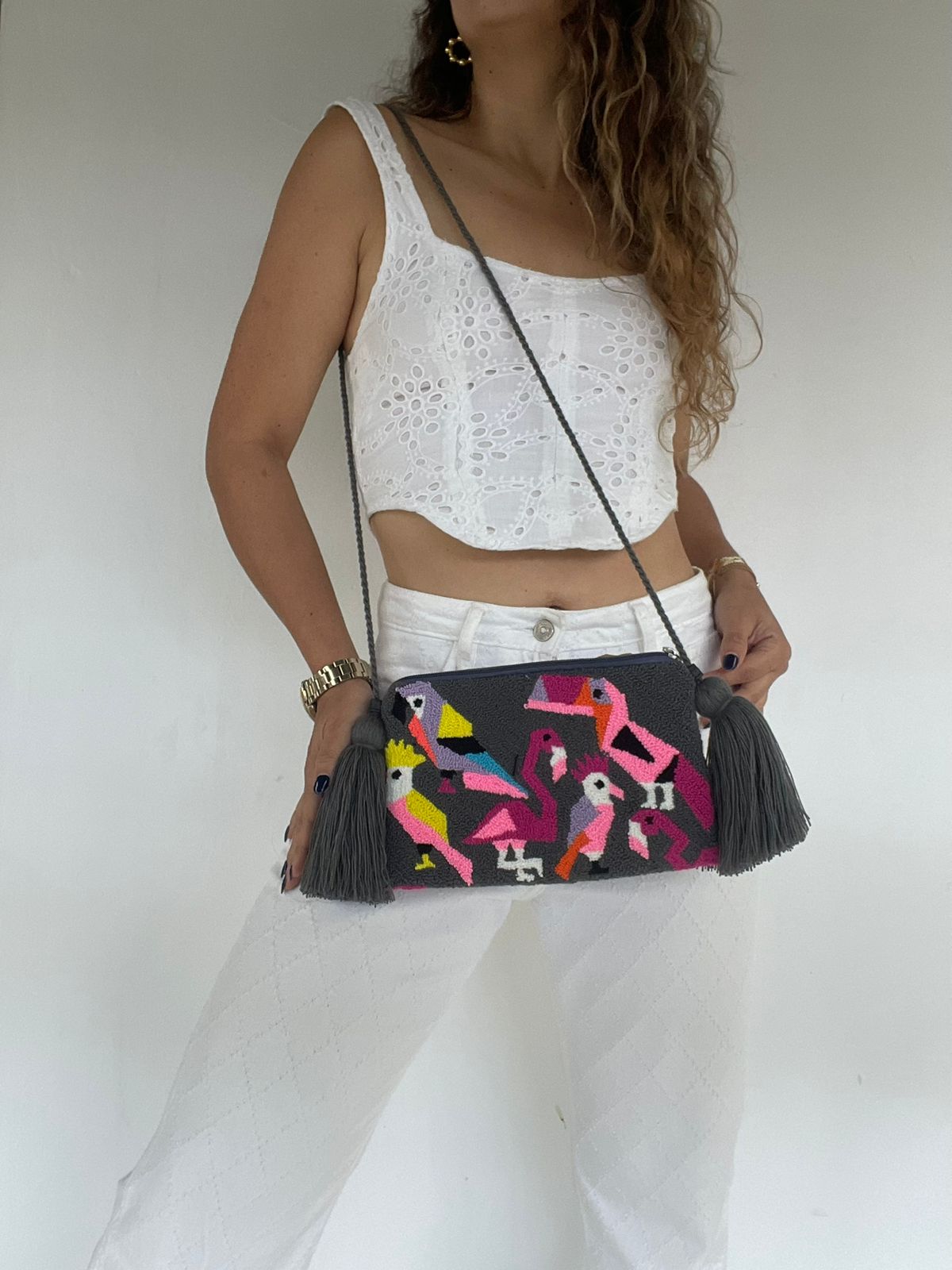 This upholstered envelope , 100% handmade by the Wayúu ethnic group in the Guajira Peninsula , is woven from wild cotton , a natural material that provides durability and an authentic touch. It features a zipper and an internal lining , combining practicality and elegance in a single piece. Available in a variety of colors and designs , each sachet reflects the rich tradition and creativity of Wayúu artisans. Measuring approximately 15 cm high x 25 cm wide , it's the ideal size for carrying your essentials safely and stylishly. Its 110 cm long drawstring ensures comfort and versatility. All products in this catalog are available for immediate shipping , so you can enjoy this handcrafted piece without waiting.