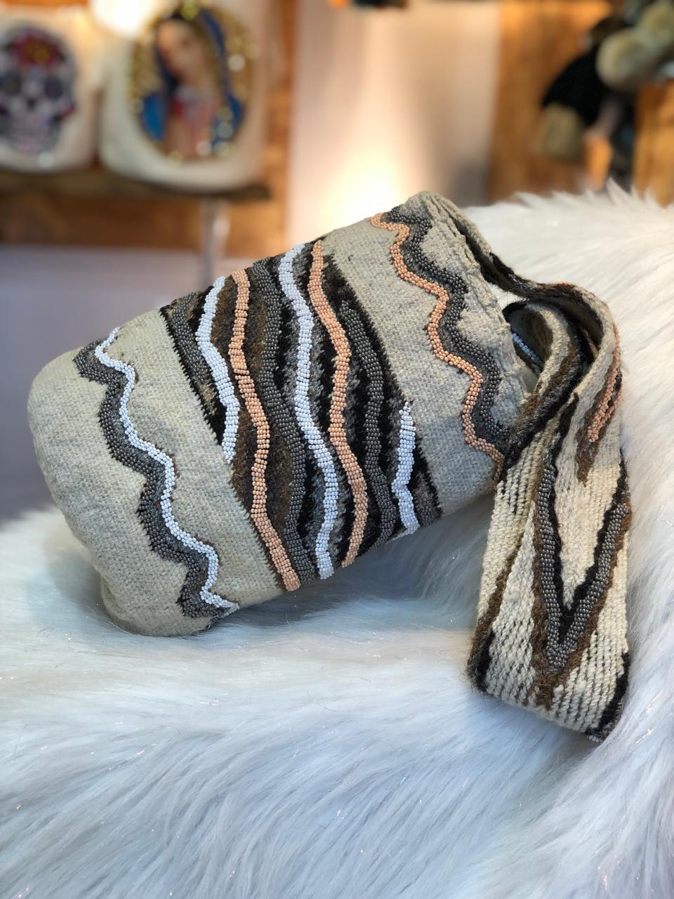 Mochila Tradicional Arhuaca Recamada está tejida a mano por la comunidad Arhuaca, una de las cuatro etnias principales que habitan la Sierra Nevada de Santa Marta - Colombia, posteriormente es recamada por nuestras artesanas, un equipo de trabajo conformado por más de 25 madres cabeza de hogar ubicadas en algunos municipios del Eje Cafetero. Los recamados son hechos con mostacilla checa de alta calidad. Sus medidas son:  26 cm de alto x 25 cm de ancho Gaza 85 El proceso de elaboración es extenso debido a la precisión y el cuidado con que se realiza el bordado de la mostacillla detalle por detalle. Esta mochila, que toma aproximadamente 40 días en su confección, está disponible para envío inmediato.