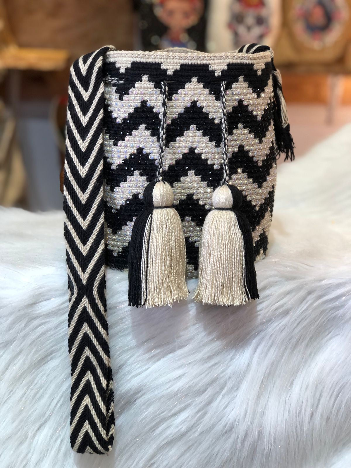 Esta mochila mediana es de diseño tradicional, 100% tejida a mano por la etnia Wayuú en la península de La Guajira. Confeccionada en algodón silvestre de alta calidad, su diseño clásico se ve realzado por los detalles en pedrería, que le aportan un toque único y elegante, característico del trabajo artesanal Wayuú. La pedrería, meticulosamente colocada, resalta el estilo auténtico de la mochila, convirtiéndola en una pieza especial y distintiva. Con unas medidas aproximadas de 22 cm de alto x 21 cm de ancho y una gaza de 99 cm de largo, es perfecta para quienes buscan una mochila duradera, espaciosa y auténtica. Disponible en una variedad de patrones y colores, cada mochila tiene su propio carácter, permitiéndote elegir la que mejor se adapte a tu estilo. Todos los productos de este catálogo están disponibles para envío inmediato, para que puedas disfrutar de esta pieza única sin demoras.