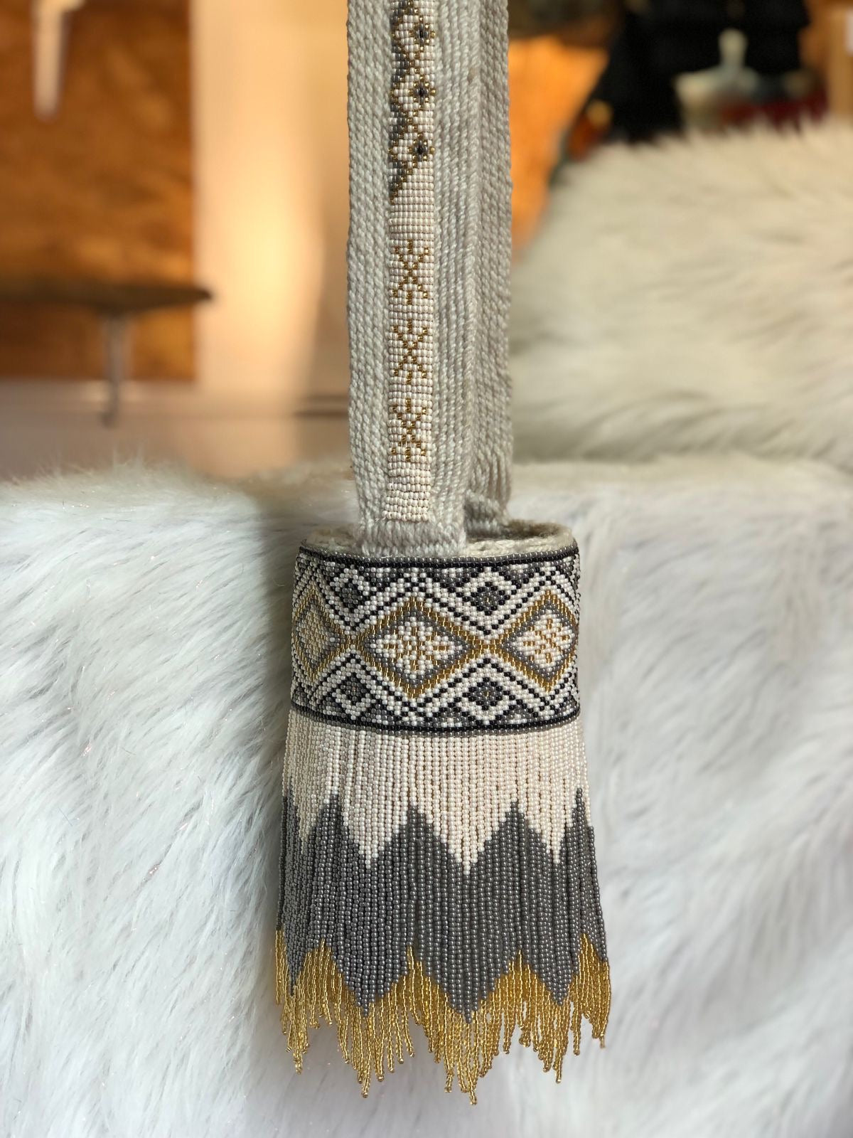 Mochila Premium de Lana Recamada en Mostacilla Checa – Edición Limitada Para quienes buscan lo exclusivo y lo excepcional, esta mochila es la pieza definitiva. Confeccionada a mano por las comunidades más selectas de Colombia, esta mochila es un símbolo de lujo, elegancia y sofisticación. La base, elaborada por los Kankuamos de la Sierra Nevada de Santa Marta, utiliza una combinación única de lana virgen e industrial, que otorga resistencia y suavidad, mientras preserva las técnicas ancestrales de tejido. El recamado en mostacilla checa de la más alta calidad, que cubre toda la mochila y la Gaza, no solo aporta un brillo único, sino que asegura que cada detalle permanezca impecable a lo largo del tiempo, ya que esta mostacilla, no cambia de color. Cada puntada refleja la habilidad de 25 madres cabeza de hogar del Eje Cafetero, cuyas manos han tejido esta joya con dedicación y maestría. Sus medidas...